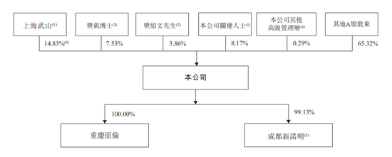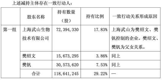 2025年9月1日-2025年10月31日间,上海武山通过集中竞价及大宗交易方式,以19.28元/股-30.67元/股的价格,累计减持1217.8万股,变现2.79亿元,持股比例从17.83%减持至14.83%。上海武山一致行动人,欧林生物实控人樊绍文、樊钒父女未参与本次减持,减持后合计控制26.23%股权。樊绍文、樊钒分别持有上海武山47.22%、6.78%的股权。