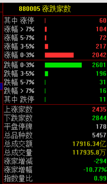 市场共2435只个股上涨,60只个股涨停,2844只个股下跌。