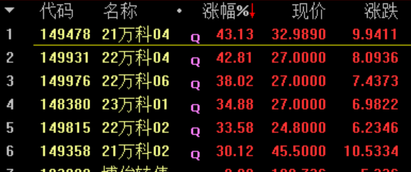此外,万科多只境内债涨幅超过30%。
