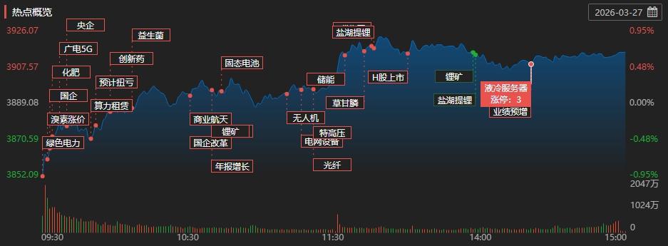 盘面上,2026年中国创新药出海BD延续强劲,行业盈利拐点全面确定,相关板块今日大涨,舒泰神(300204)、信立泰(002294)、联环药业(600513)等10余股涨停。中东局势推动新能源快速渗透,锂矿、电池产业链全线走高,赣锋锂业(002460)、海科新源(301292)、石大胜华(603026)多股封板。全球化肥贸易流动受中东战争影响几近中断,六国化工(600470)、赤天化(600227)等多股收获涨停。另一方面,保险板块延续调整,中国人保(601319)、中国人寿(601628)下挫。近期持续上涨的电力板块因回调需求出现分化,湖南发展(000722)、浙江新能(600032)、粤电力A等部分个股下跌。