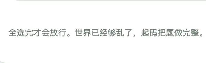 测试到后面网页还会冷不丁显示一句:“全选完才会放行。世界已经够乱了,起码把题做完整”,ADHD人直接被抓了个现行,只好老老实实回去做完题。