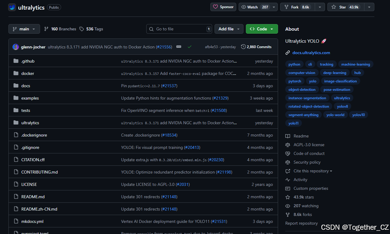 ultralytics项目自发布以来目前已经逐步迭代至YOLOv11了,不可谓不快速,官方的项目在这里,如下所示: