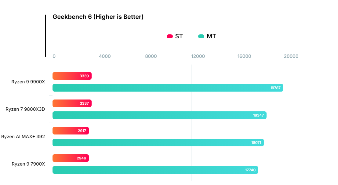 作为对比,12核的桌面版Ryzen 9 7900X在多核测试中得分为17740分,这款移动芯片不仅成功超越了7900X,甚至直追目前最强的桌面游戏芯9800X3D的约18347分。