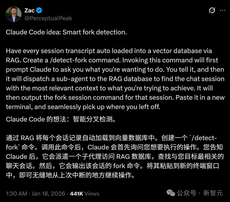 【新智元导读】昨天,Claude刚刚被曝要有永久记忆,今天就被开发者抢先一步。一个叫Smart Forking的扩展,让大模型首次拥有「长期记忆」,无需重头解释。开发者圈沸腾了:难以置信,它真的能跑!昨天,一篇Claude要获得永久记忆的爆料,震惊整个AI圈。这种「知识库」的全新记忆方式,可以让Claude在自己的永存大脑中,自动记住一切。巧的是,就在今天,就有开发者抢先「截胡」。他在现有工具上实现了一个扩展能力——Smart Forking detection,让大模型第一次拥有了「可继承的长期记忆」!