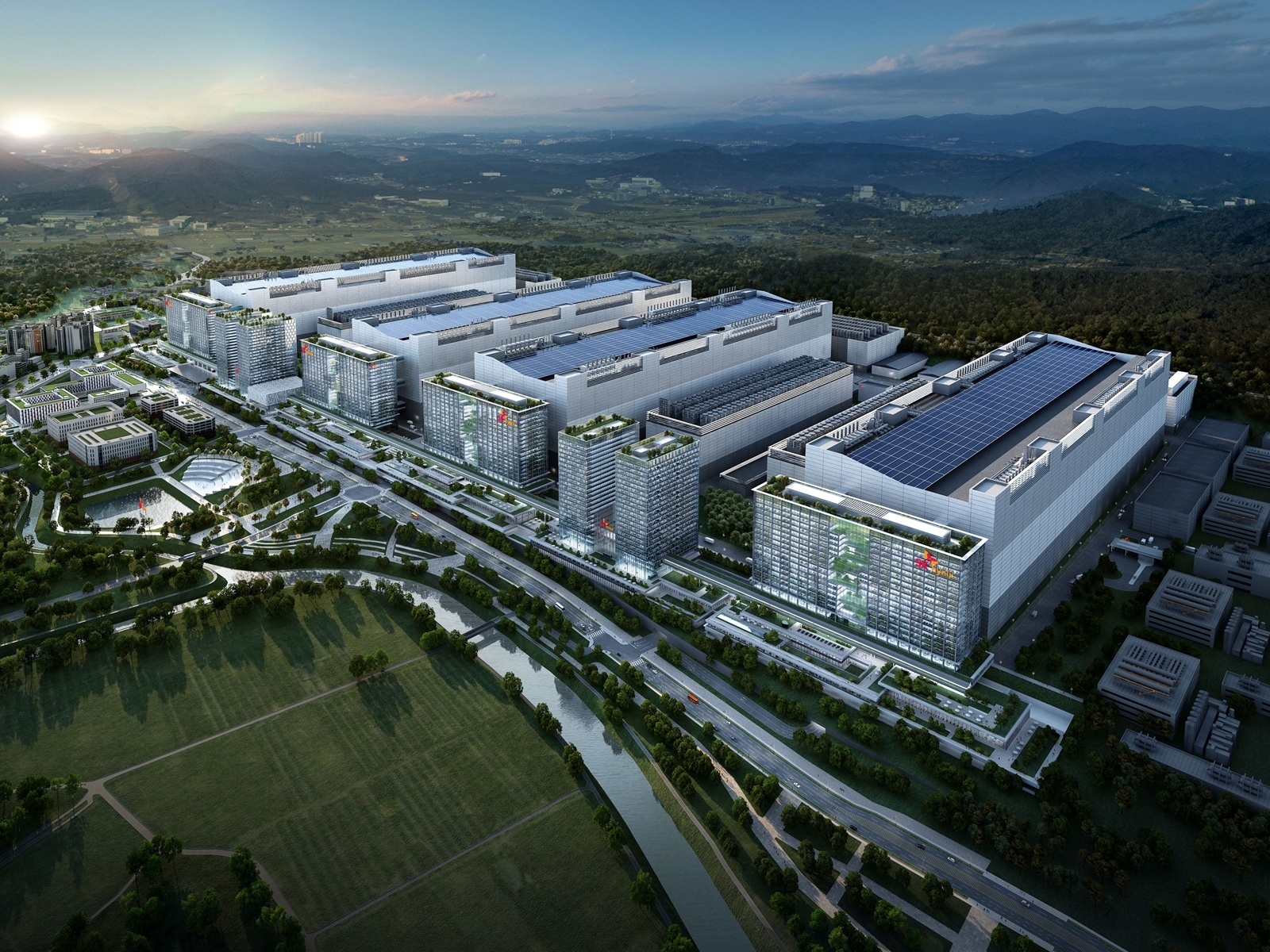 SK海力士的龙仁工厂群。公司正加紧建设,预计27年2月启用首座洁净室,比原计划提前三个月,海力士是增产最积极的厂商,要表扬。