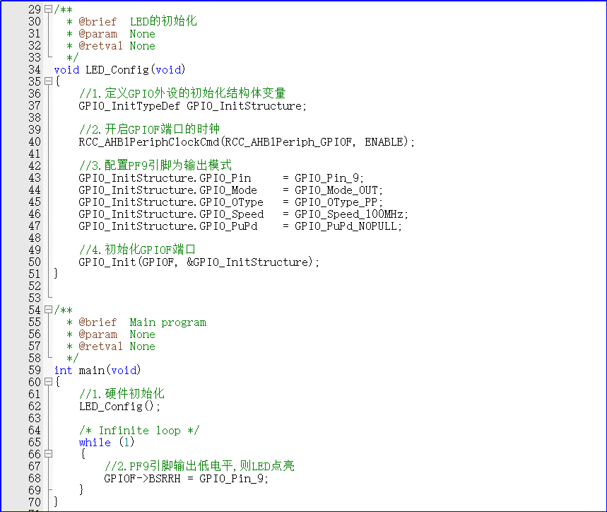 练习:根据ST公司提供的关于GPIO外设的demo,实现控制开发板的PF9对应的LED灯点亮。