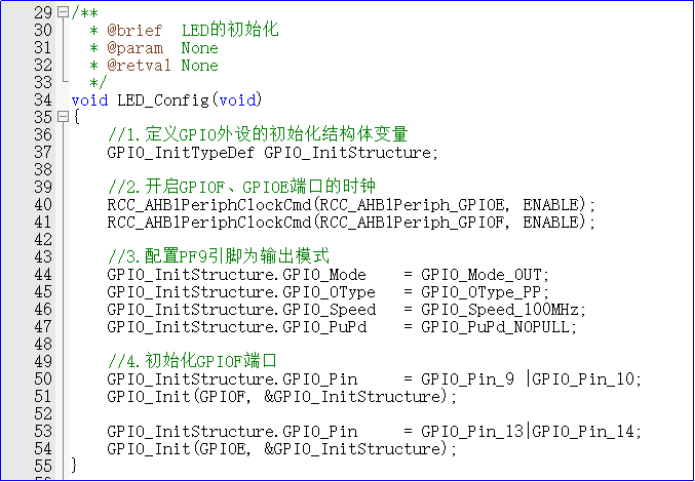 练习:根据ST公司提供的关于GPIO外设的demo,实现控制开发板的4盏LED灯全部点亮。