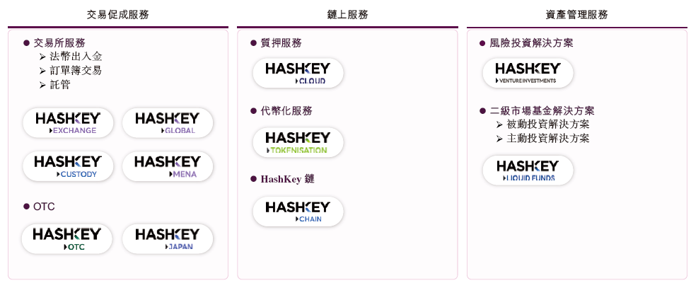 交易所服务 - HashKey为客户提供持牌的市场准入、机构级安全保障,以及与托管、OTC及代币化服务的无缝连接。公司是少数几家提供全天候完全合规入金/出金服务的交易所之一。2023年8月,HashKey成为首批获准同时为专业投资者及零售投资者提供服务的VATP之一。截至2025年9月30日,HashKey的数字资产交易所累计促进现货交易量达1.3万亿港元,成为亚洲具有稳固基础的持牌数字资产交易服务提供商。