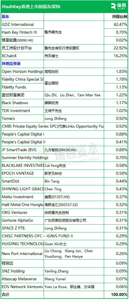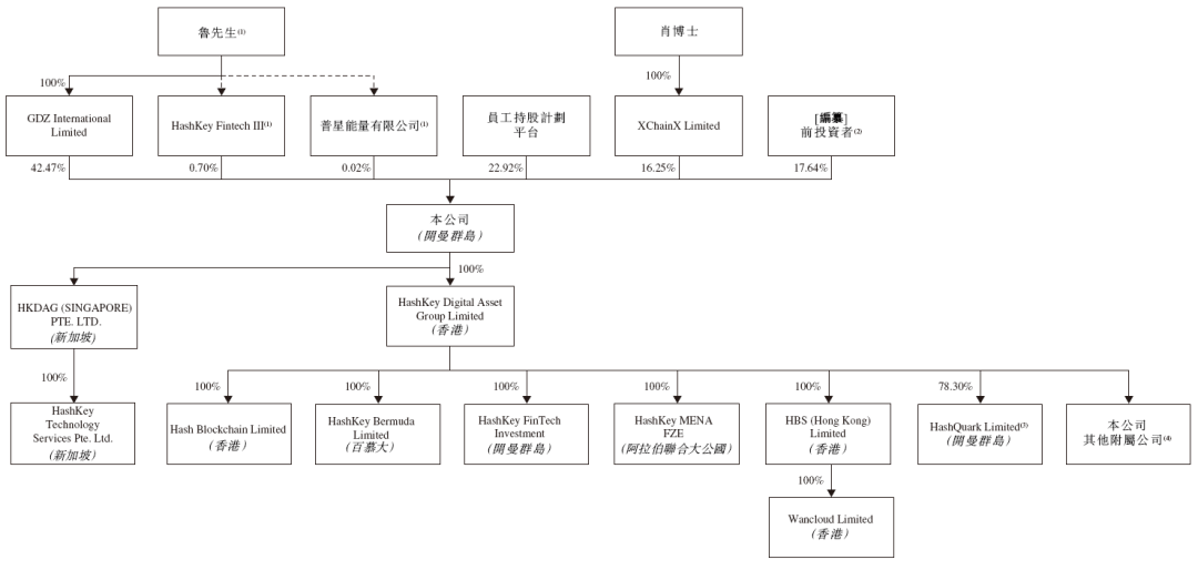 招股书显示,HashKey在紧随香港上市前的股东架构中,