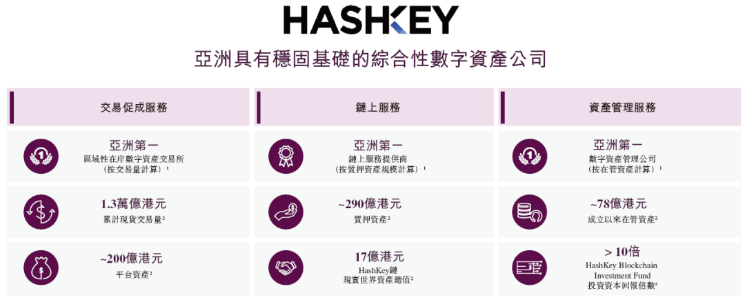 HashKey为机构客户提供数字资产投资机会,涵盖风险投资及二级基金投资。截至2025年9月30日,HashKey的在管资产自成立以来有78亿港元,截至2024年12月31日,HashKey是亚洲在管资产规模最大、总部位于香港的资产管理服务提供商。
