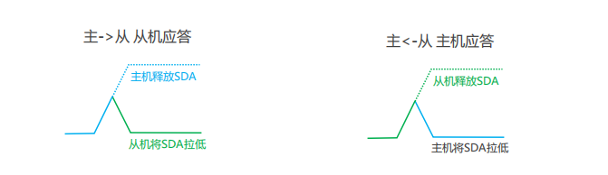 发送应答:主机在接收完一个字节之后,在下一个时钟发送一位数据,数据0表示应答,数据1表示非应答