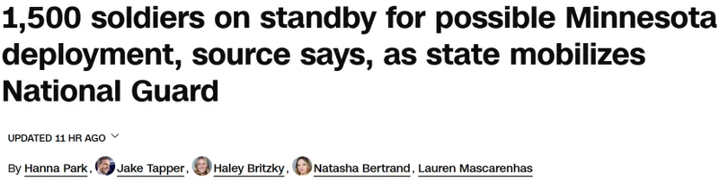此外,五角大楼上周还通知200名德州国民警卫队士兵,他们需随时做好前往明尼苏达州进行支援的准备。这些士兵自去年从芝加哥返回后,一直处于待命状态。