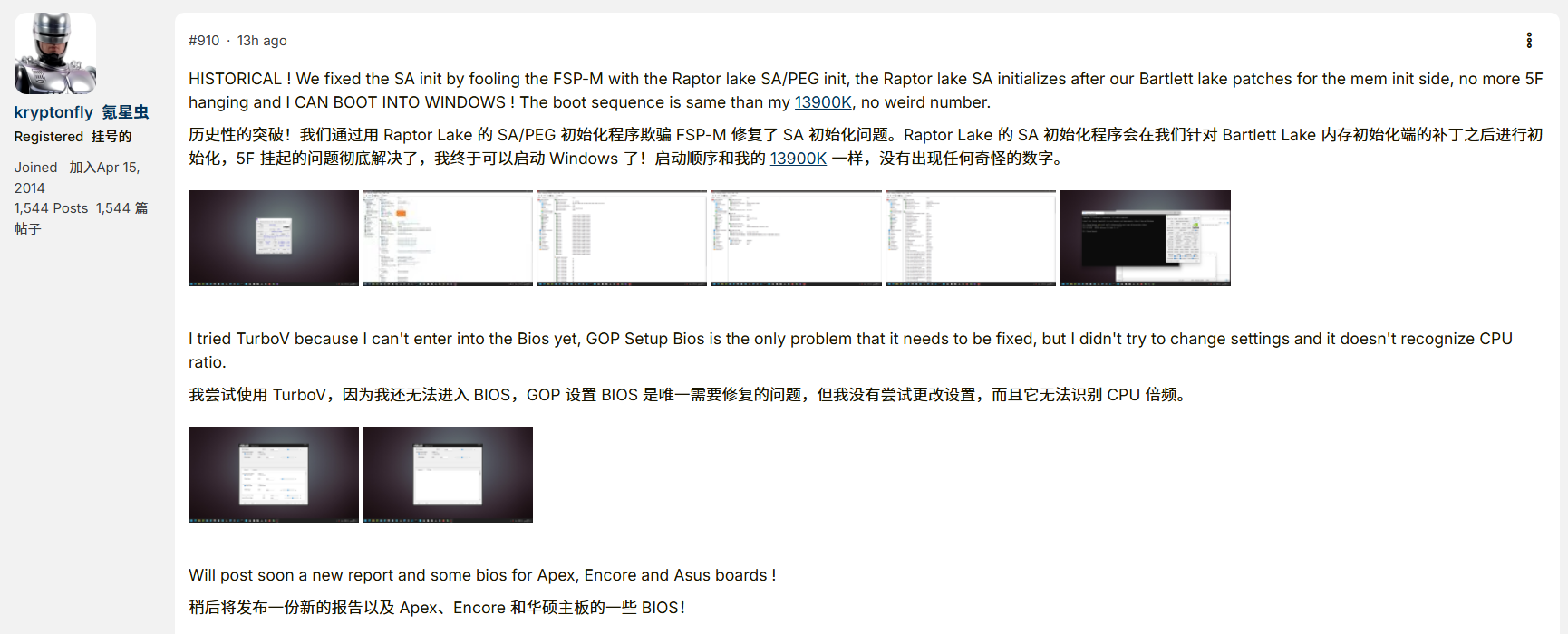 目前成功进入Windows是一个重要里程碑,但系统的稳定性、设备兼容性、微码以及实际基准性能仍有待验证。