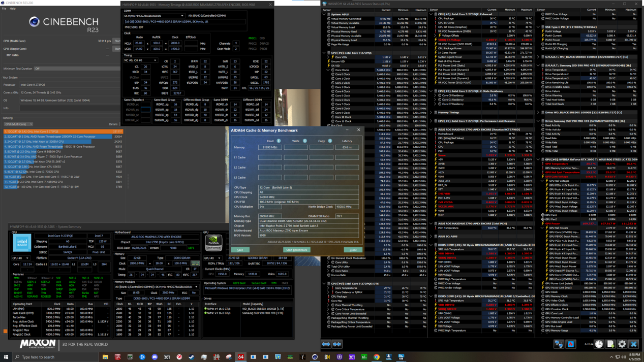 另一名玩家Talon2016则使用华硕ROG Maximus Z790 Apex主板搭配64GB DDR5 5600MT/s内存,不仅跑出32288分(接近酷睿i9-13900K),后续还取得了33818分的更高成绩,并成功运行《战地6》,且开启了Secure Boot。