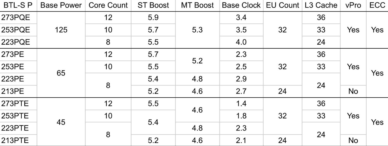 PQE 系列:高功耗版(TDP 125W),支持 vPro 和 ECC 内存。