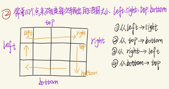 bottom:确定圈的底侧,固定底部横坐标(最大横坐标),取值 bottom=matrix[0].length-1