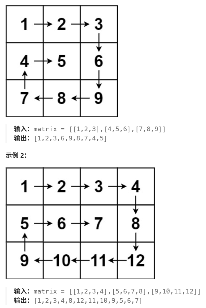 54. 螺旋矩阵 - 力扣(LeetCode)https://leetcode.cn/problems/spiral-matrix/description/