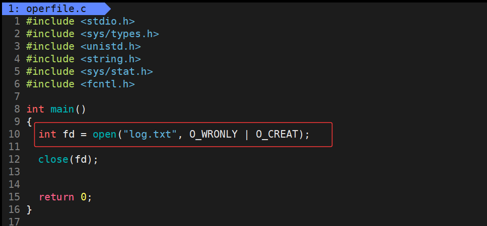 接下来我们将逐步演示如何创建、打开和关闭文件。首先,我们使用带两个参数的open函数尝试打开一个不存在的文件,并以O_WRONLY(只写)模式进行操作,观察系统是否能在当前工作目录下自动创建该文件: