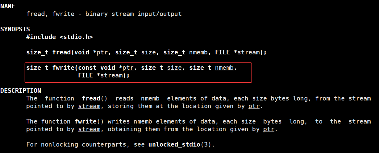 fwrite 函数是C标准库中用来向文件(或流)中写入数据的函数: