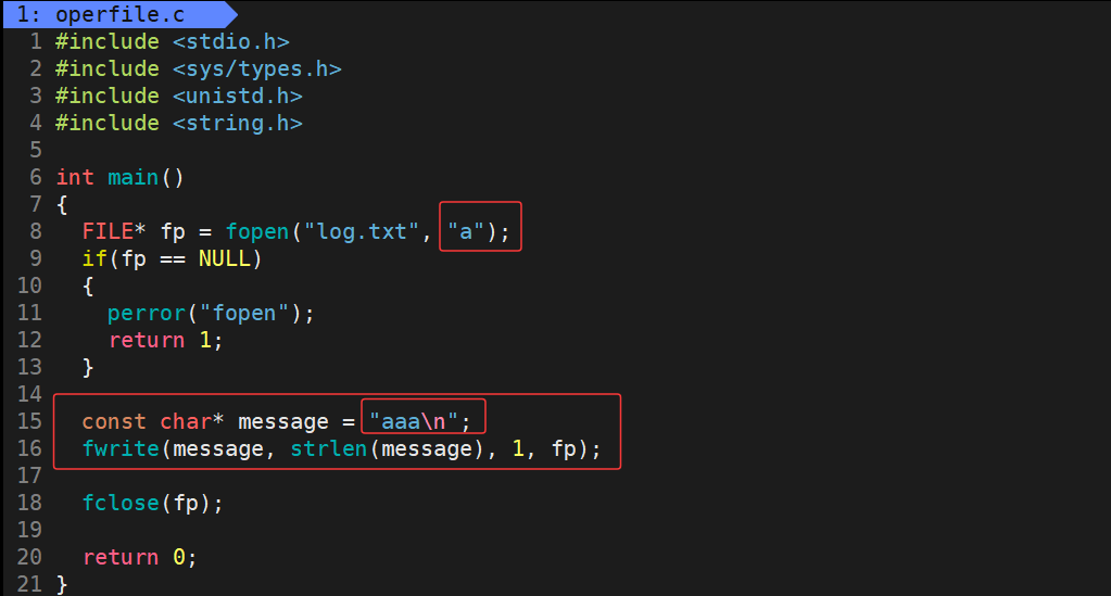 那么接下来我们尝试一下使用文件系统调用模拟实现C语言中的有以a方式fopen打开文件的方式,我们知道a方式fopen对于打开不存在的文件会在当前路径下创建一个文件,并且也是对文件进行写入,并且在文件结尾进行追加式的写入