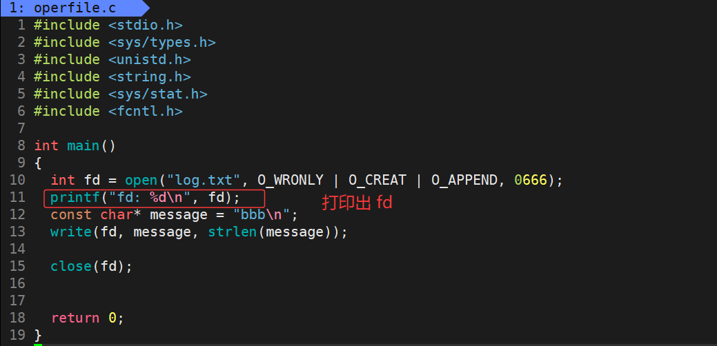 那么我们就可以使用文件系统调用去直接对这些文件描述符0,1,2进行使用,例如使用write直接对文件描述符1,2对应的显示器文件进行打印