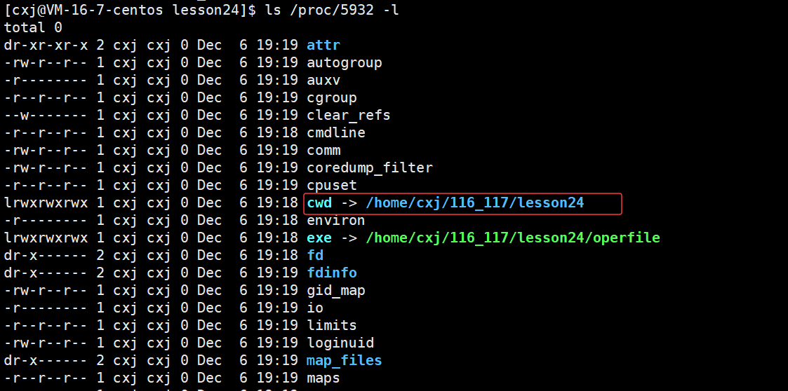 - 我们当前处于休眠状态的进程PID已经显示出来,因此可以在/proc目录中找到对应的PID信息,查看其cwd属性。当使用 fopen 以写入模式("w")打开不存在的文件时,系统会在当前目录创建该文件。操作系统之所以知道创建位置,正是依赖于进程的cwd属性。