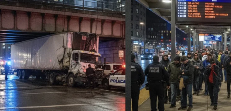 根据Metra发布的官方消息,事故发生于西塞罗(Cicero)附近。由于一辆货车猛烈撞击了铁路桥,出于安全检查的必要,官方紧急叫停了该线路的所有班次。由于事发时正值通勤尖峰时段,车站内积压了大量乘客,交通部门此前曾预警将出现大规模晚点。