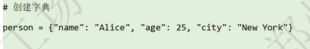 字典(dict):键值对集合,支持通过键访问对应的值