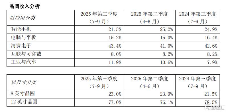 其中8英寸晶圆贡献23%的收入,12英寸晶圆贡献77%的收入。