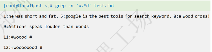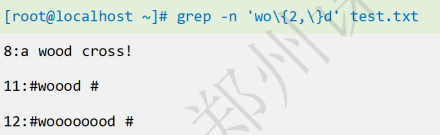 输出包含单词wood的行,\<、\>代表单词边界
