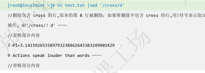 删除第3~5行: nl test.txt | sed '3,5d'