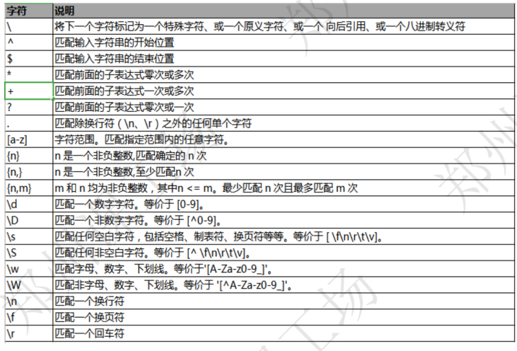 - 元字符:在正则表达式中具有特殊意义的专用字符