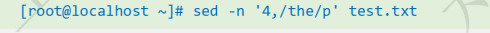 将第3~5行中的所有the替换成THE :sed '3,5s/the/THE/g' test.txt