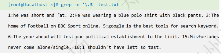 删除以”.“结尾的行:sed /\.$/d' test.txt