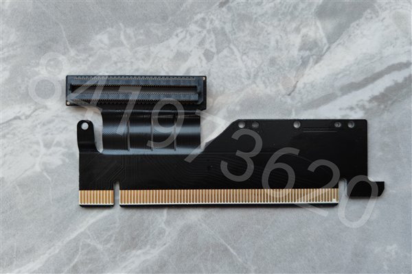 PCIe插槽连接也很特殊,通过PCB上的一个转接口加一个子卡达成。