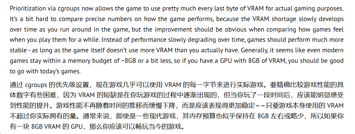 Vock开发的解决方案包含两个核心组件,其一是dmemcg-booster,可标记需要"保护"的前台程序,使其显存数据不会被系统驱逐,转而将后台任务挤入速度更慢的系统内存。