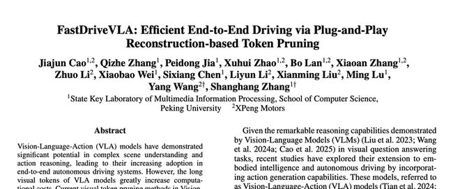 小鹏和北京大学联合完成的一篇论文,提供了一种解法。这篇论文刚刚被AAAI 2026录用,名字叫《FastDriveVLA》。