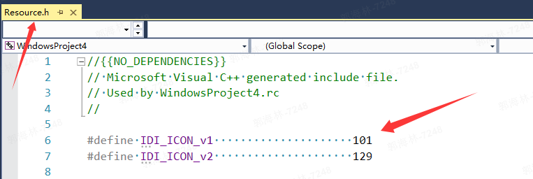 5、程序中有多个icon,默认Resource.h中IDI_ICON_xxx定义最小的是exe图标,这个宏数值定义可以手动修改
