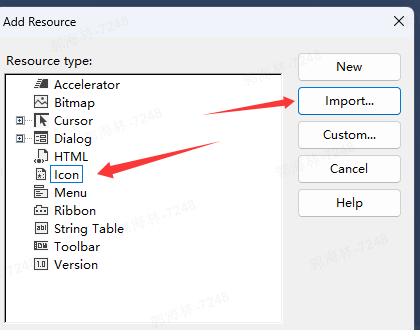 右键rc文件,选择添加资源文件,导入icon文件